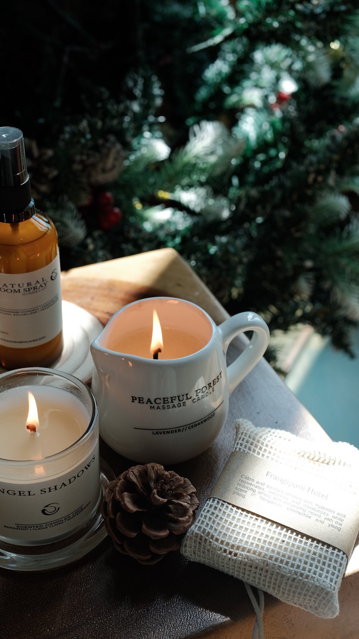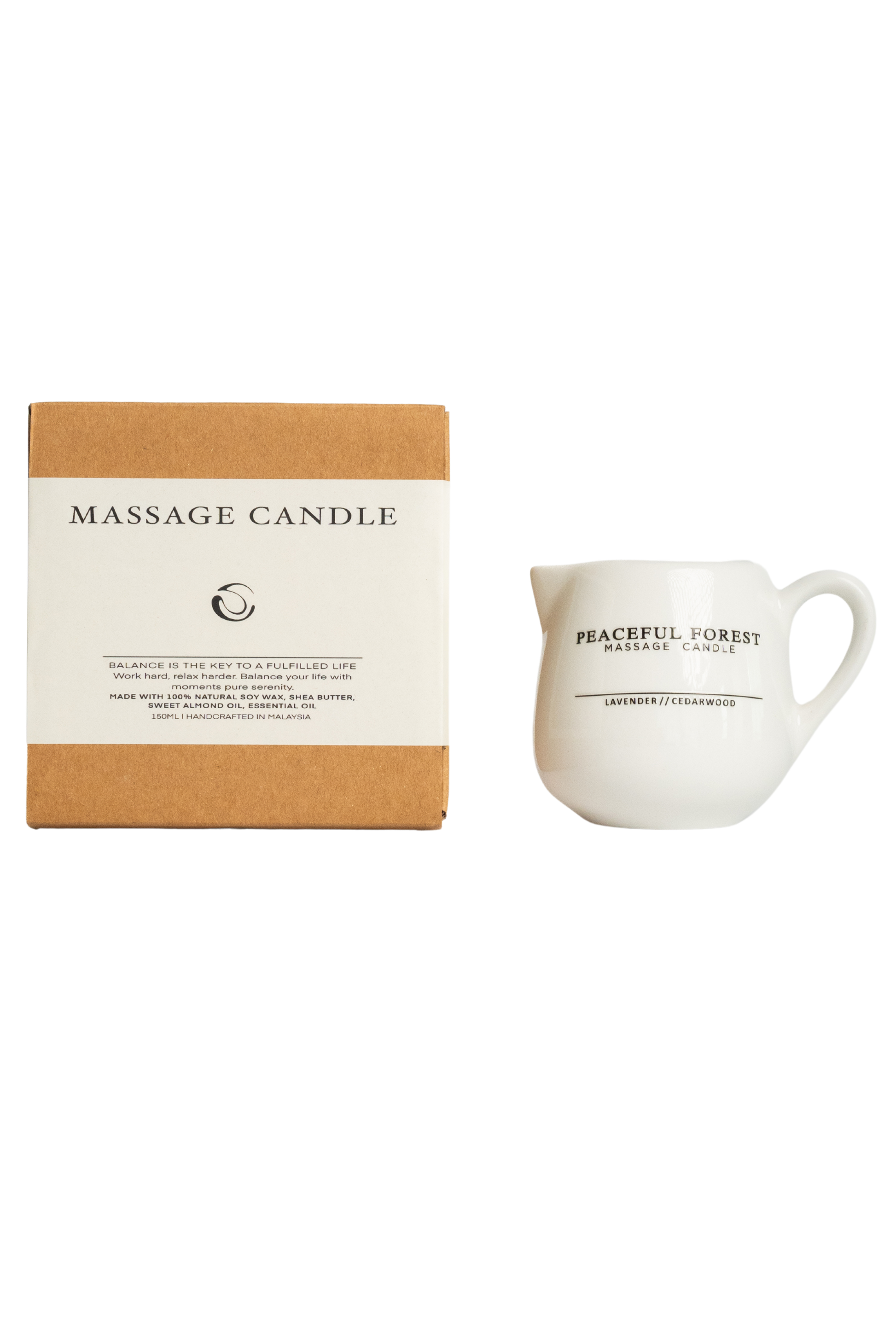 Soothing properties of lavender and cedarwood essential oils with the nourishing benefits of soy wax, sweet almond oil, and shea butter. This blend promotes relaxation, reduces stress, and nourishes the skin, making it a perfect choice for a calming and rejuvenating massage experience.